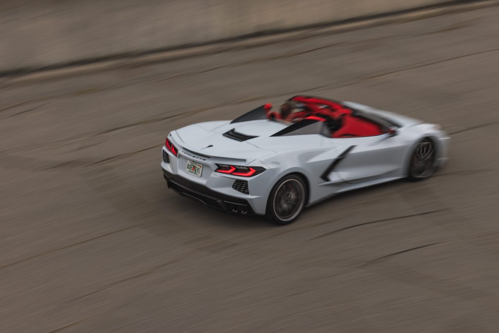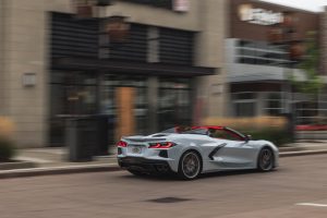 The seamless roof design maintains strong storage space and high performance, even with the top down — making it one of the most track-capable Corvette convertibles ever. A rear power-adjustable window and dedicated cooling vent support the mid-engine layout.