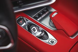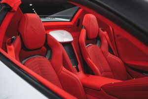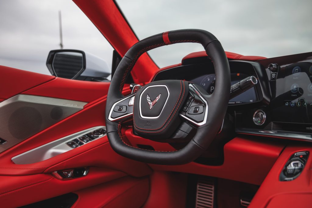 The Corvette interior is designed like a true driver-focused cockpit, inspired by high-performance and aviation themes.
