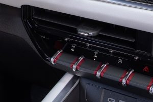 - Perforated leather-appointed seating and laser-etched, open-pore wood trim